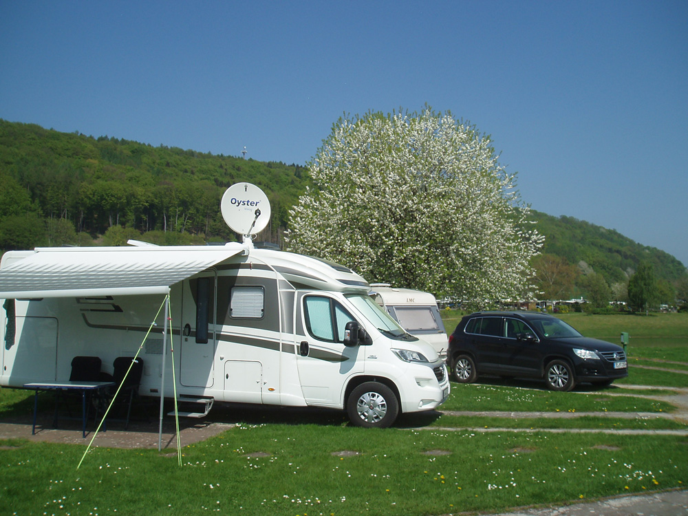 Plätze mit Strom-, Frischwasser-, Abwasseranschluß, Satanschluß, Platten für Terrasse und privates Bad direkt am Stellplatz, Sauna, Solarium, Fittnessraum